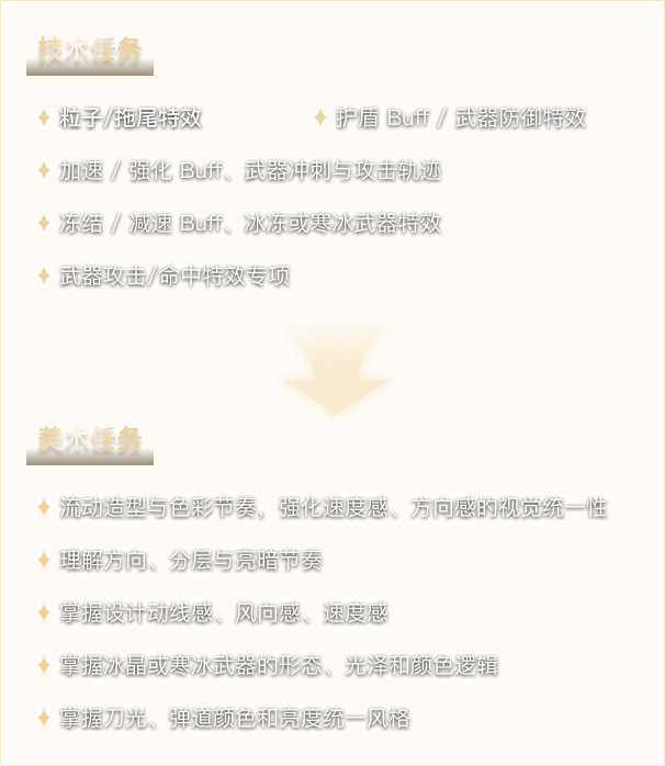 内容覆盖 Shader/材质、物理类特效、魔法表现型特效等关键方向,能够独立完成风格清晰、表现准确、节奏合理的技能特效。